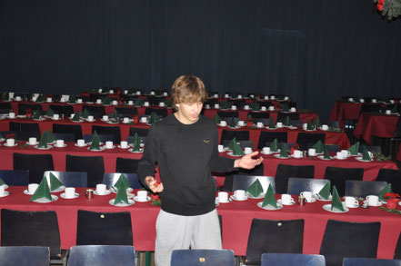 Für das leibliche Wohl sorgten wie jedes Jahr die Schülerinnen und Schüler der 9. Klassen gemeinsam mit dem Kollegium. Mit viel Einsatz bewirteten sie die Gäste und servierten eine Auswahl an selbstgebackenen Kuchen und Plätzchen aus der Schulküche. Dazu wurden heiße und kalte Getränke angeboten, die an den winterlichen Nachmittag perfekt anknüpften.